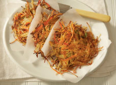 Flatten mixture in skillet and cook each side 5–10 minutes or until vegetables are tender and golden.