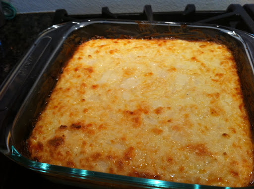 Add chopped onions, mayo, shredded parmesan cheese, montery jack cheese.