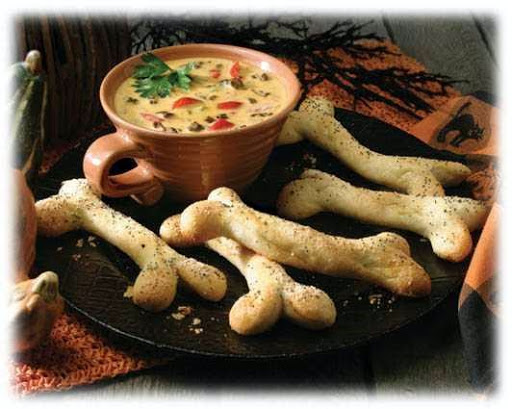 When little trick-or-treaters are chilled to the bone, warm them up with hot Bone Chillin? Breadsticks fresh from the oven! Break one of these bones, and they?re ready for dippin? in a hip Halloween dip!