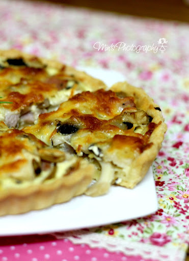 Season with some sat ad pepper, and spoon into the pie shell, top with bacon and onion.