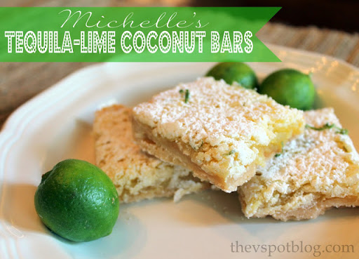* While the crust is baking, whisk eggs in a medium bowl until smooth, mix in coconut, lime zest, lime juice, tequila and the remaining 1 1/2 cups of sugar. Stir baking powder, salt and remaining 1/4 cup flour. Whisk into the egg mixture. Pour over the hot crust.