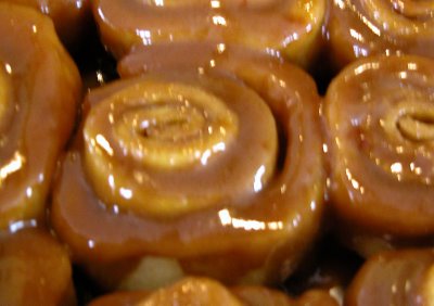 Bake your rolls on top of the caramel sauce as called for in your recipe. Allow to cool only slightly before turning out on a platter with the caramel side up.