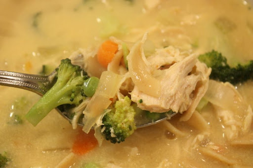 Add onions, celery and broccoli and cook to soften about 3-5 minutes. Sprinkle with flour and cook an additional minutes, stirring constantly. Slowly add broth, milk, cream, red pepper flakes, salt and pepper.