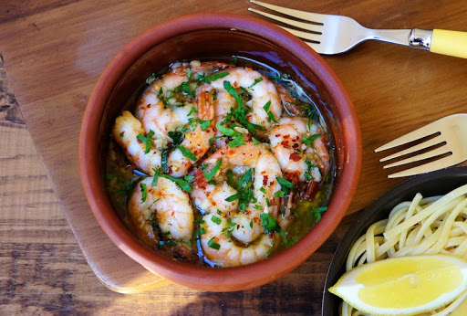 Remove the baking dish from the oven and carefully place the shrimp mixtures in the hot oil, and top with butter. Return to the oven and bake for another 5 to 6 minutes or until the prawns are just cook. If you are serving with pasta, then mix in the cooked pasta and season with lemon juice, sea salt, pepper, and top with additional parsley. Serve warm.