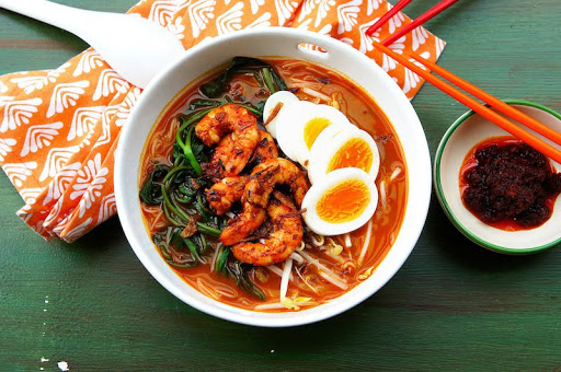 For the soup base: Blend the chilies, shallots, garlic and belachan (shrimp paste).