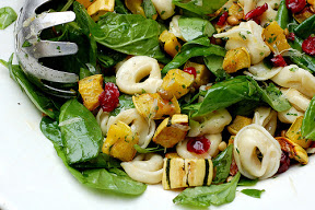 Roasted Delicata Squash & Tortellini Salad With Cranberries, Greens & Pepitas