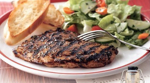 Remove chicken from the marinade; discard marinade. Place chicken on the hot, oiled grill and place foil-wrapped brick on to. Cook for 3 t 4 minutes per side, or until chicken is no longer pink and juices run clear (170 degrees).