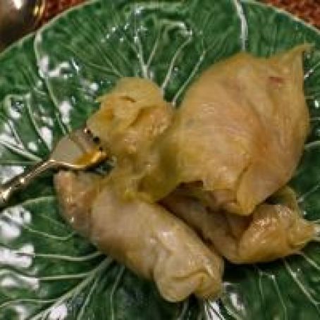 Cabbage: Take 1 large stock pot. Remove outer layers of the cabbage; place in bottom of the pot. Add water. Remove leaves, preserving them from end carefully. Layer them in the stock pot. Cook on low until steamed gently, but not fully cooked. Reserve liquid.