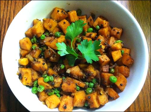 Curried Sweet Potatoes with Peas