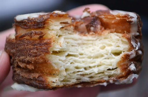 Meanwhile, whisk together the icing sugar, maple syrup and enough milk, water or cream to make a drizzling consistency. Drizzle over the croissoughnuts while they’re still warm.