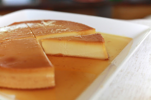 Let flan cool in pan for 5 minutes. Run a knife along the edge of the pan and carefully invert onto a large rimmed platter. Place in refrigerator to cool completely.