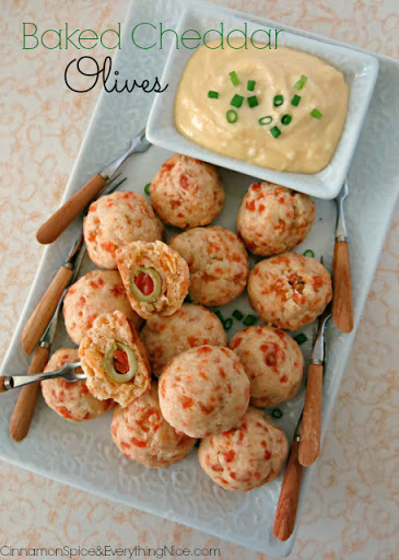 Baked Cheddar Olives with Parmesan Dipping Sauce
