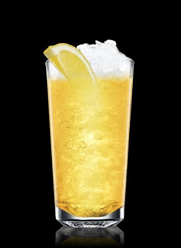 Fill a chilled highball glass with crushed ice. Add all ingredients. Stir. Garnish with lemon.
