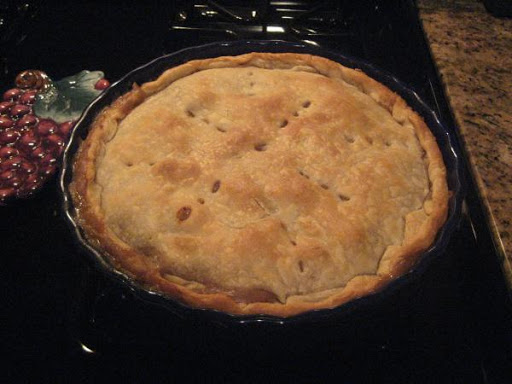 Roll out pie crust & press into dish & up sides. Add beef/vegetable mixture.
