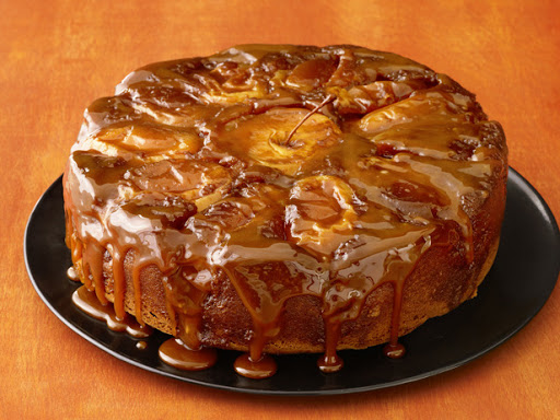 Invert a plate on top of the cake, then flip over the cake and plate. Using pot holders or a towel, wriggle the pan off. Soften the reserved 1 1/2 cups caramel in the microwave, about 2 minutes. Drizzle the cake with some of the caramel. Slice and serve with the rest.
