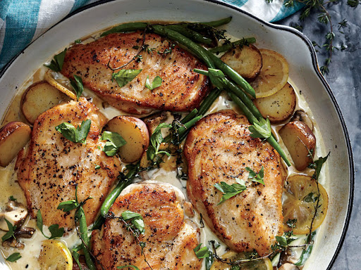 It doesn't get much easier, or more satisfying: a complete dinner in one pan in half an hour. Lemon brightens this cozy winter meal.