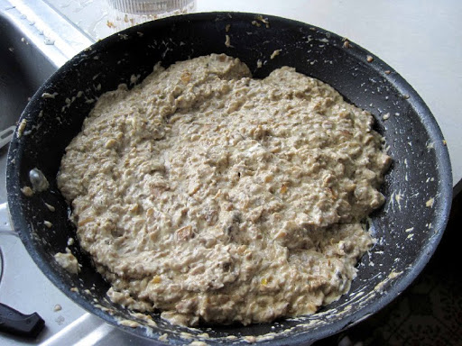 Mill the mushrooms in food processor until they are the size of popcorn kernels.