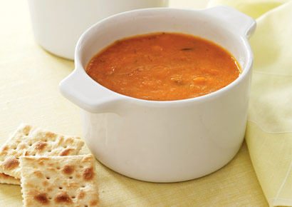 Ladle into 4 soup bowls and garnish each with 1 tablespoon of the yogurt and the avocado slices.