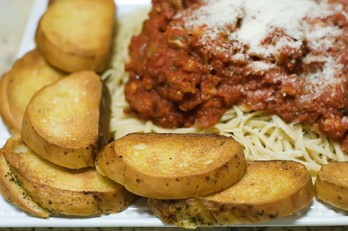 Place pasta on a platter or in a large bowl and smother with the sauce. Top with grated Parmesan cheese.