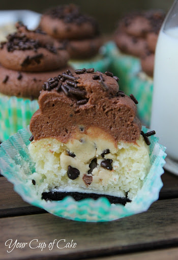 10. Pipe frosting onto cupcakes over the cookie filling and top with sprinkles, mini chocolate chips or Oreos.