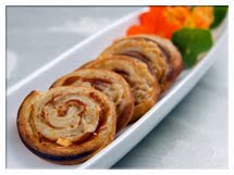The uncut rolled & stuffed pastry can be frozen for a month or two and sliced when you want to have a hot, fresh hors d'oeuvre.