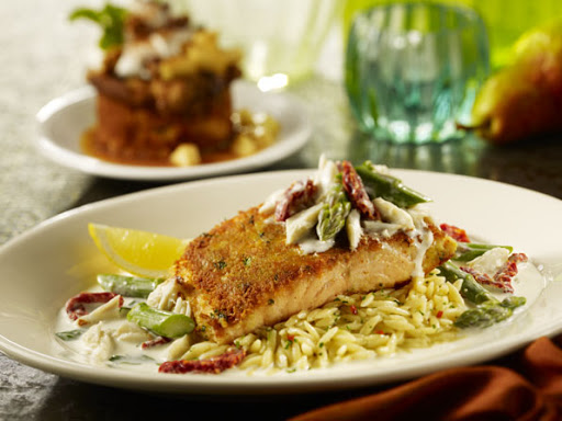 9. Place the salmon on top of the orzo.