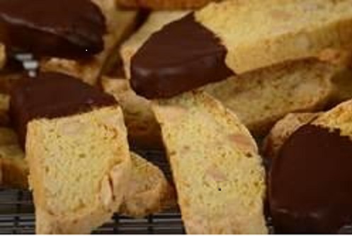 For Chocolate Dipped Biscotti: Place 4 ounces of the finely chopped chocolate in a heatproof bowl and place it over a saucepan of simmering water. Once the chocolate has melted, remove from heat. Add the remaining chocolate and stir with a wooden spoon until it has completely melted and is smooth and glossy. Taking one biscotti at a time, dip one end into the melted chocolate and place on a parchment or wax paper- lined baking sheet. Once all the biscotti have been dipped in the chocolate, place the baking sheet in the refrigerator for about 10 minutes, or until the chocolate has hardened.