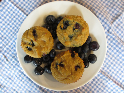 Bake at 350 degrees °F for about 18 minutes or until a toothpick comes out clean (well, without batter, that is... it may have a juicy blueberry stain!)