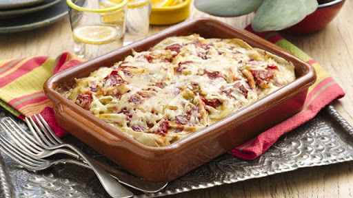 Step 4.Bake uncovered about 40 minutes or until bubbly and heated through. Let stand 10 minutes before serving.