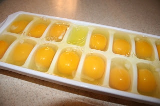 Crack a single egg into each slot in an ice cube tray. Freeze, then pop out and put back into the freezer in a zip lock bag freeing up your ice cube trays for other purposes.