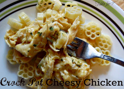 This is so far the easiest thing that has been cooked up in my crock pot. Just chicken, 2 kinds of soup,sour cream and some garlic powder. That's it! It is delicious chicken in a creamy cheese sauce and goes great served over rice, or noodles.