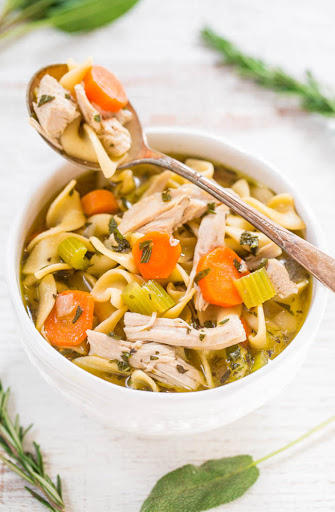 This is chicken noodle soup's turkey cousin and it's perfect for your leftover Thanksgiving turkey. It's hearty, comforting, full of rich flavors, and fairly healthy all things considered. I used white breast meat but some dark is okay. If you don't have leftover turkey to shred, you can certainly use shredded chicken. I added sage, rosemary, and thyme which make the soup taste like Thanksgiving all over again.