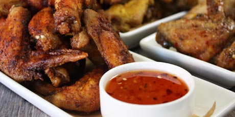 Mix all the dry ingredients in a bowl large enough to allow room for tossing. Add the wings and toss until thoroughly and evenly coated. Arrange the wings on a baking tray and cook until they are crispy brown on the outside but still juicy on the inside, about an hour.