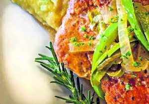 2. Heat vegetable oil in skillet. Dredge chops in flour and cook 6-8 minutes on each side, until browned. Remove chops from the pan.