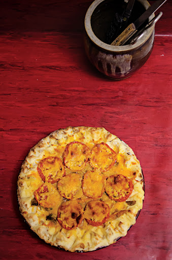 • 3 medium vine-ripe tomatoes, cored and sliced 1/4" thick
