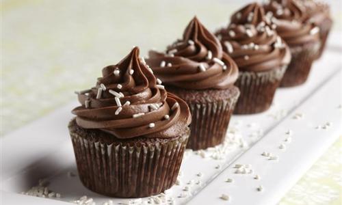 A chocolate kiss provides the surprise in these chocolate cupcakes. Sour cream in the batter makes them extra moist, and chocolate frosting tops them off.