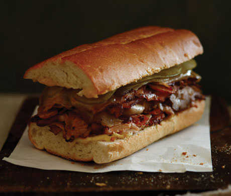 Directly inspired by the cubanos served at Latin American Cafeteria, the Cuban sandwich on the menu at Garces Trading Company is my way of bringing one of the treats of Little Havana to Philadelphia. It took some doing, since the essential Cuban bread is not to be had outside of Miami, but we found a bakery that follows a legit Cuban recipe to make it for us to order. All of the other ingredients are house-made from the roast pork and cured ham to the pickles and mustard.