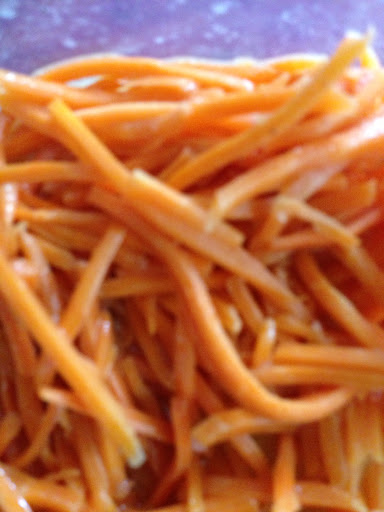 2. Stir and toss the dressing into the shredded carrots