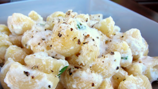 - 16 oz. (500 g.) Pipes, Elbow Macaroni, Penne or short tubular Pasta that can scoop up the cream sauce