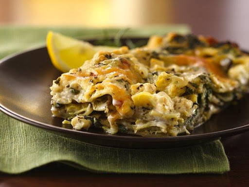 4 Cover and bake 40 minutes. Uncover and bake about 15 minutes longer or until noodles are tender and lasagna is bubbly. Let stand 10 to 15 minutes before cutting. Garnish with rosemary sprigs and lemon wedges.