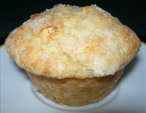 In a large bowl, stir together flour, 1/2 cup of the sugar, baking powder, baking soda, and salt. In a medium bowl, stir together egg, yogurt and vanila, pour over dry ingredients. Add melted butter and stir just to blend (do not overmix). Quickly spoon batter into paper liners, filling each muffin cup to the top. Sprinkle with remaining 1 tbsp of sugar.