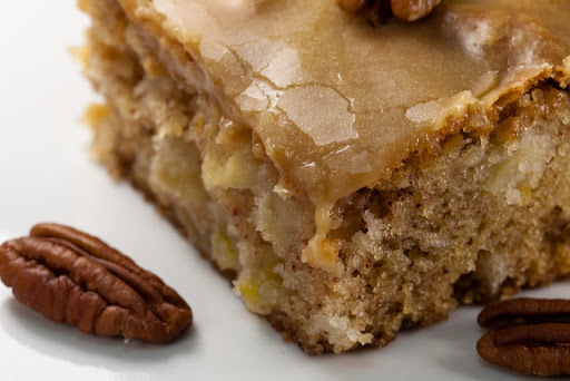 Preheat oven to 350 degrees. Grease a 9 x 13" pan. Combine oil, sugar, and eggs. Stir in flour and baking soda. Add vanilla, pecans, and apples. Spread in prepared pan and bake for 45-50 minutes. Cool for 2 hours. Then prepare frosting.