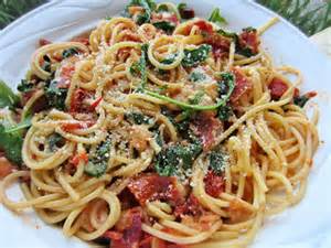 Cook bacon for the pasta in a large nonstick skillet over medium heat until crisp. Remove with a slotted spoon to a paper towel-lined plate. Pour off all but 1 T. drippings.