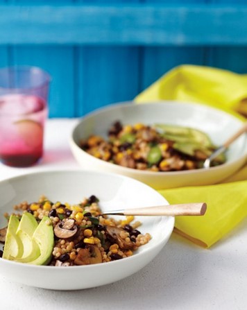Add couscous, black beans, lime juice, jalapeno (if using), and scallion greens to mushroom mixture and toss to combine. Season to taste with salt and pepper. Divide among four bowls and top with avocado.