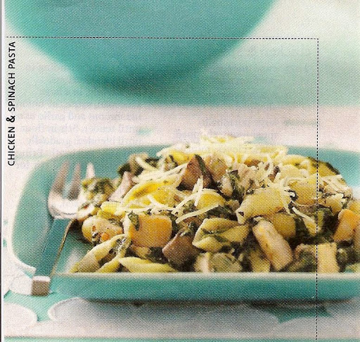 2. Add the chicken, spinach, 3 Tbsp. cheese, lemon juice, pepper and pepper flakes; heat through.