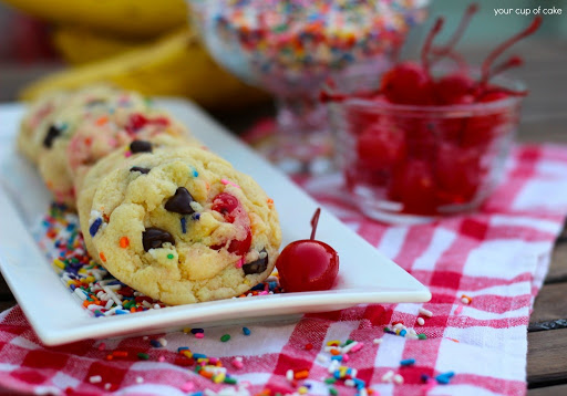5. Gently fold in cherries and sprinkles. (You can use a funfetti cake mix and then skip the sprinkles.)