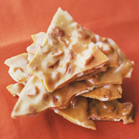 2. Remove pan from heat; remove thermometer. Quickly sprinkle baking soda over mixture, stirring constantly. Immediately pour onto prepared baking sheets. Use 2 forks to lift and pull candy as it cools. Cool completely; break into pieces. Store tightly covered up to 1 month. Makes 2-1/4 pounds (72 servings).