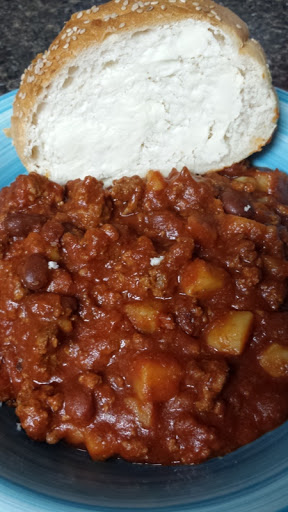 Season ground chuck with salt, pepper, chili powder and garlic powder while frying. Drain. Stir in tomato paste, tomato sauce and beans. Add potatoes & some of the potato water until desired consistency. let simmer about an hour.