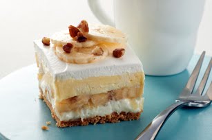 BEAT cream cheese and remaining sugar with mixer until well blended. Spread carefully over crust; top with pineapple. Slice 4 bananas; arrange over pineapple.
