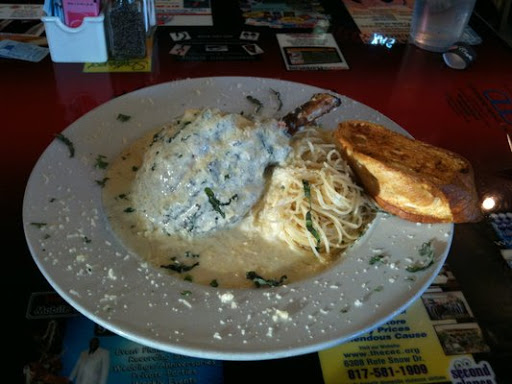 Serve with 5 ounces hot angle hair pasta. Place the bone end of the chop in the angel hair and cover with Asiago sauce.
